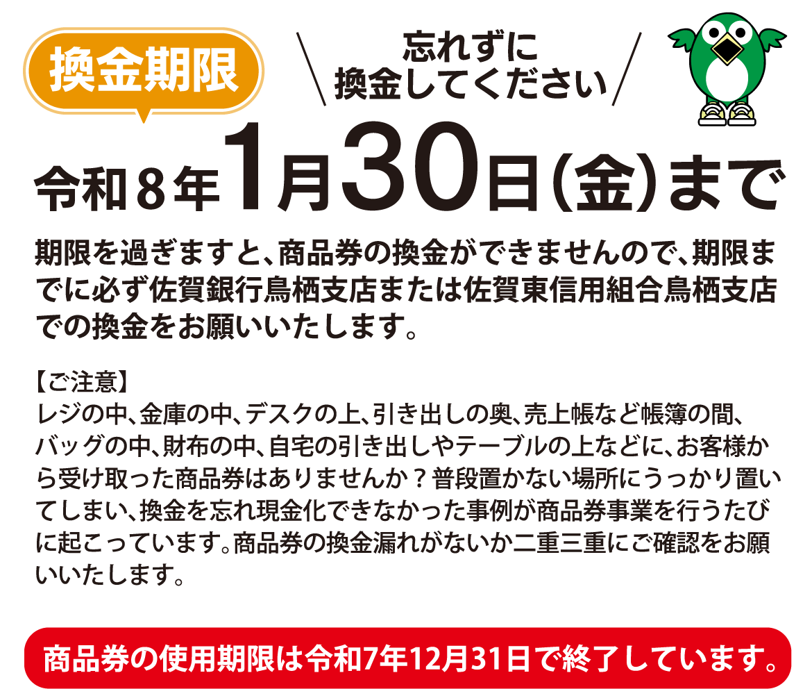 【重要】鳥栖市プレミアム付商品券第5弾使用期限のお知らせ